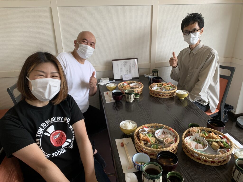 まずは神保さんとのランチ。ちょっと早めに大村入りされたので、神保彰の大ファンで高校時代にTORI-Kマスターと一緒にカシオペアのコピーに熱心に取り組んでいた「実り」の大将のところでランチを食べることに。