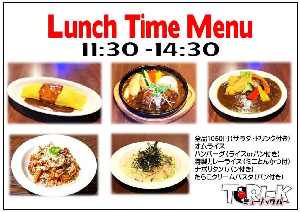 この機会にミュージックバーTORI-Kの洋食を召し上がってみてはいかがですか?