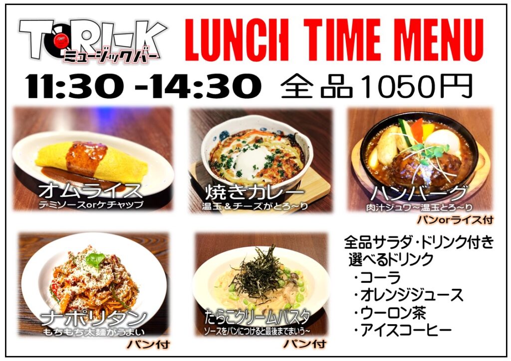 焼きカレーもサラダとドリンクがついて1050円!