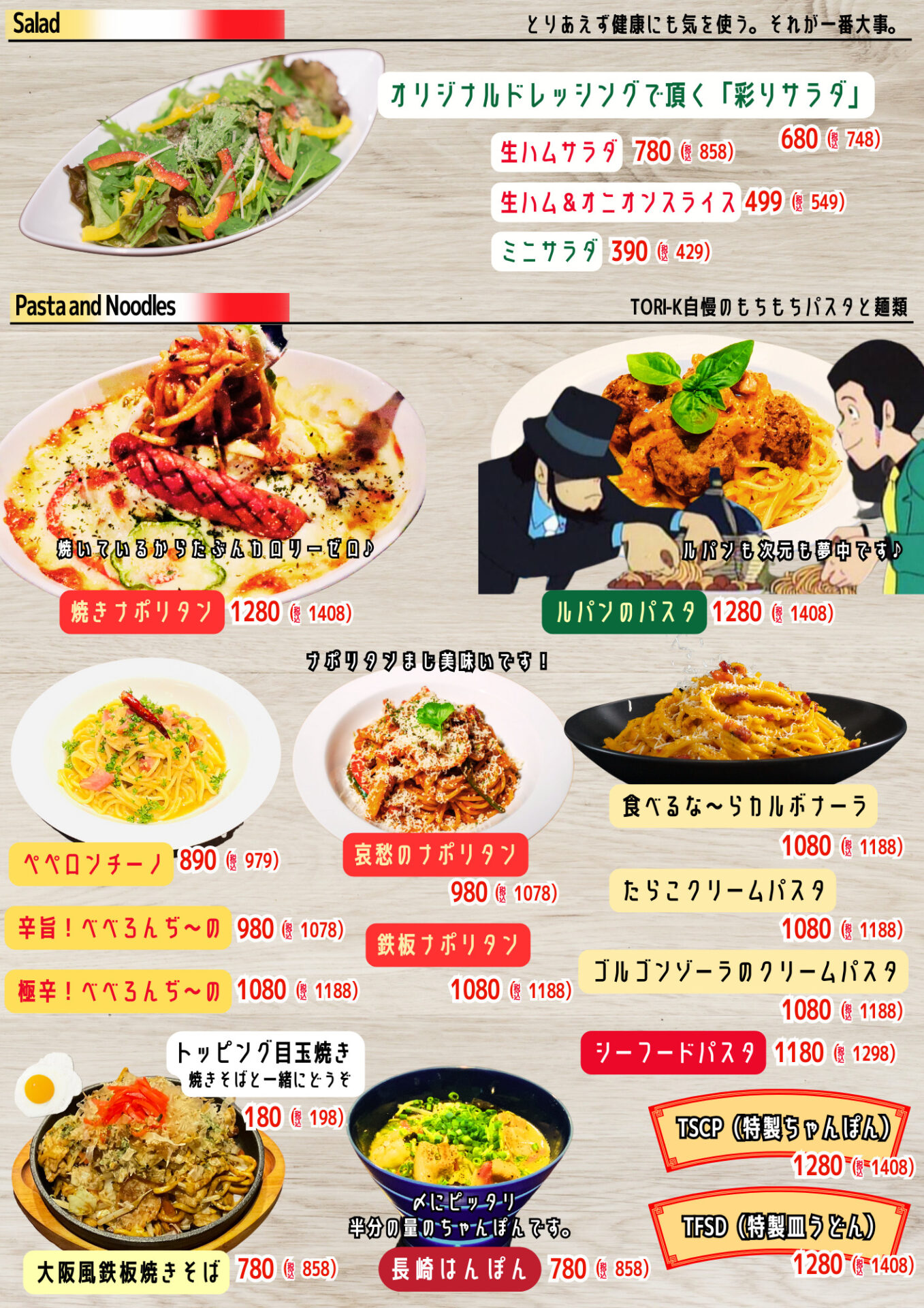 野菜もやっぱ食べなきゃね。&TORI-K自慢の麺類!