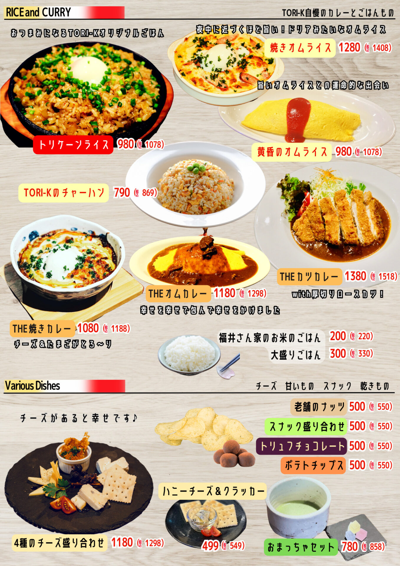 カロリーハラスメントの嵐!TORI-Kのごはんメニュー