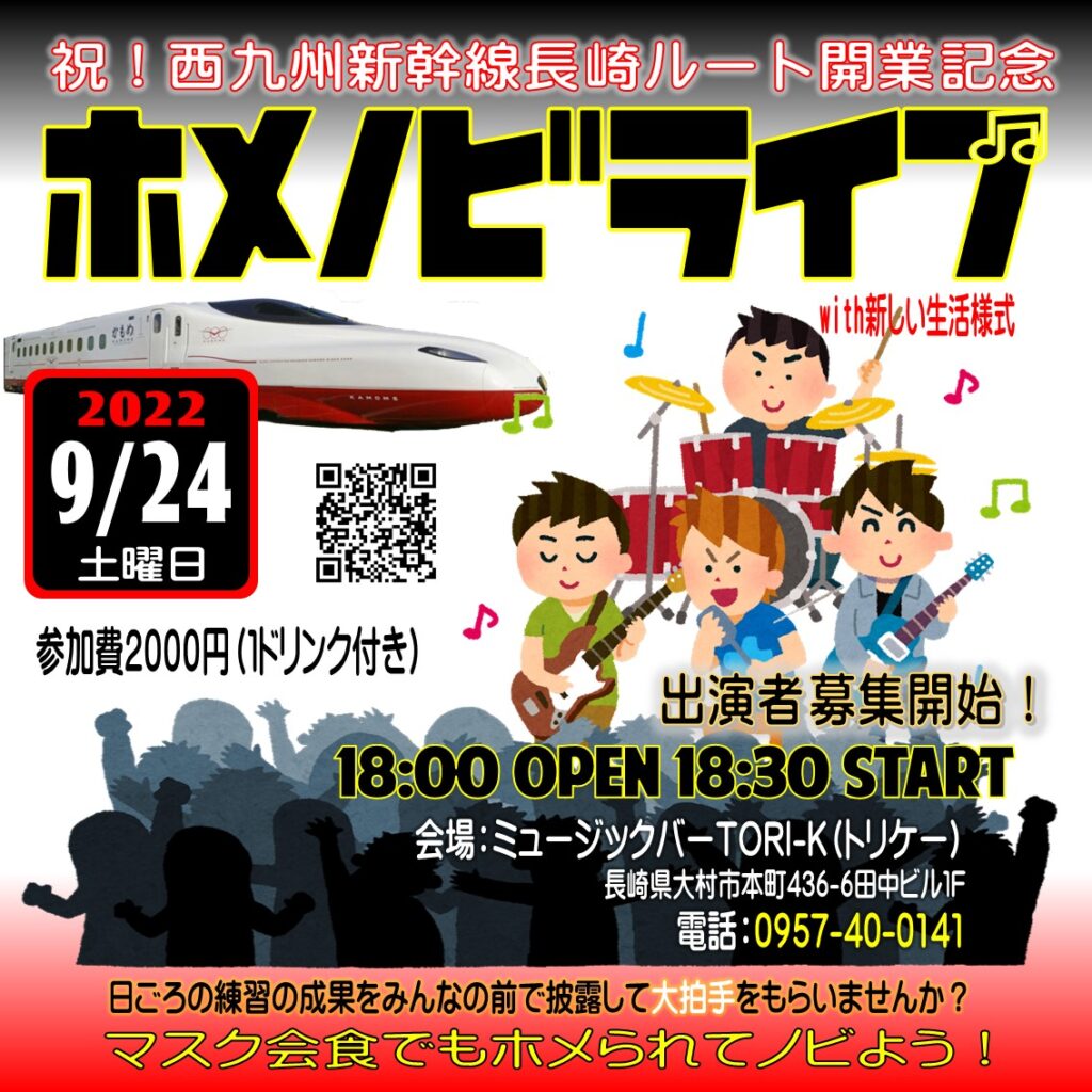 西九州新幹線開業記念ホメノビライブ今日は西九州新幹線開業記念かってに後夜祭「秋のホメノビライブ」です。 出演枠は埋まっておりますが、観覧は自由です。 今回も気持ちの入った、気合の入ったアマチュアミュージシャンがステージに立とうとスタンバッてます。 どうぞ […]