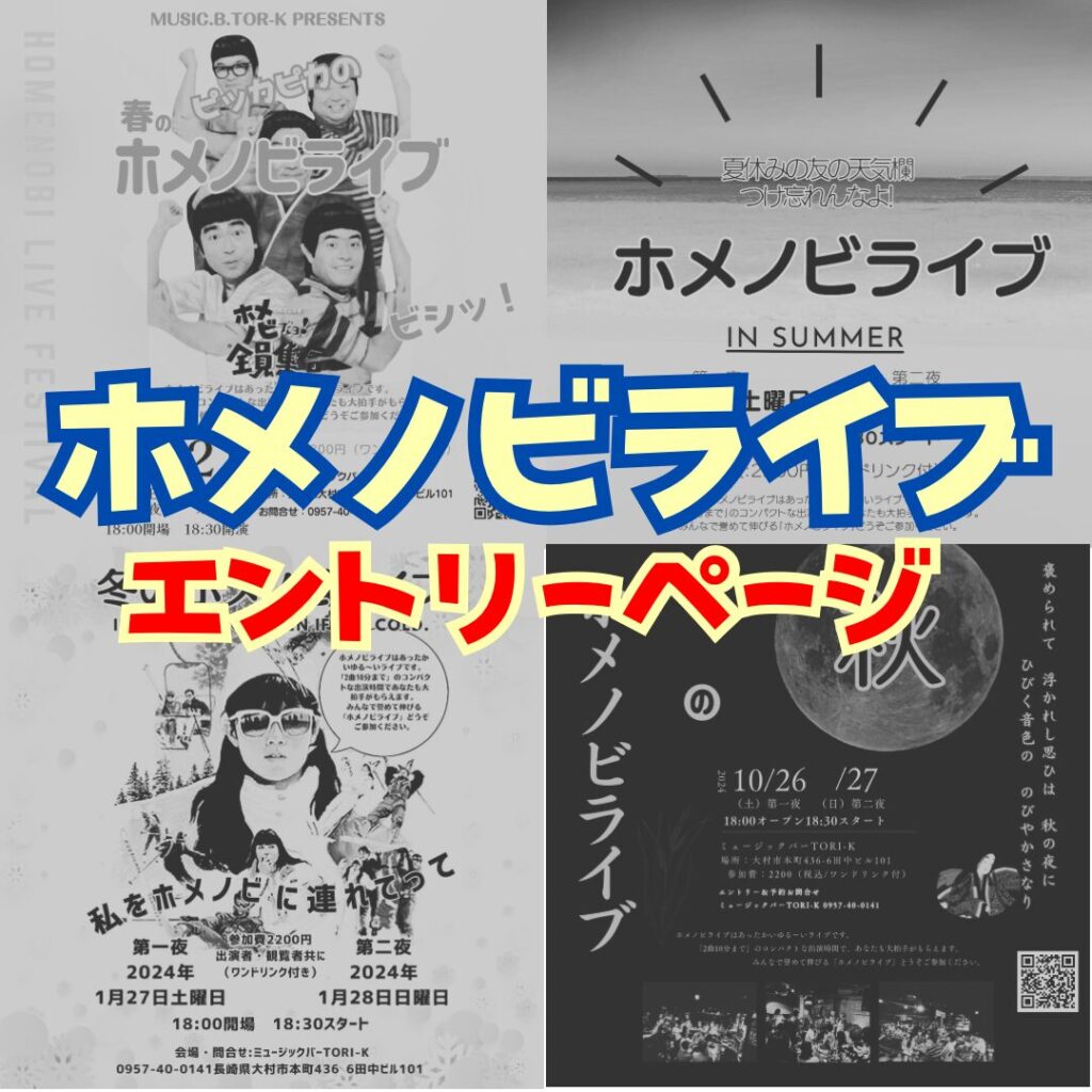 「ホメノビライブ」エントリーページお問合せありがとうございます。 「ホメノビライブ」のエントリーを希望される場合はミュージックバーTORI-K公式LINEに登録をお願いします。 ミュージックバーTORI-K公式LINE友だち登録後 お名前 エントリー希望 […]